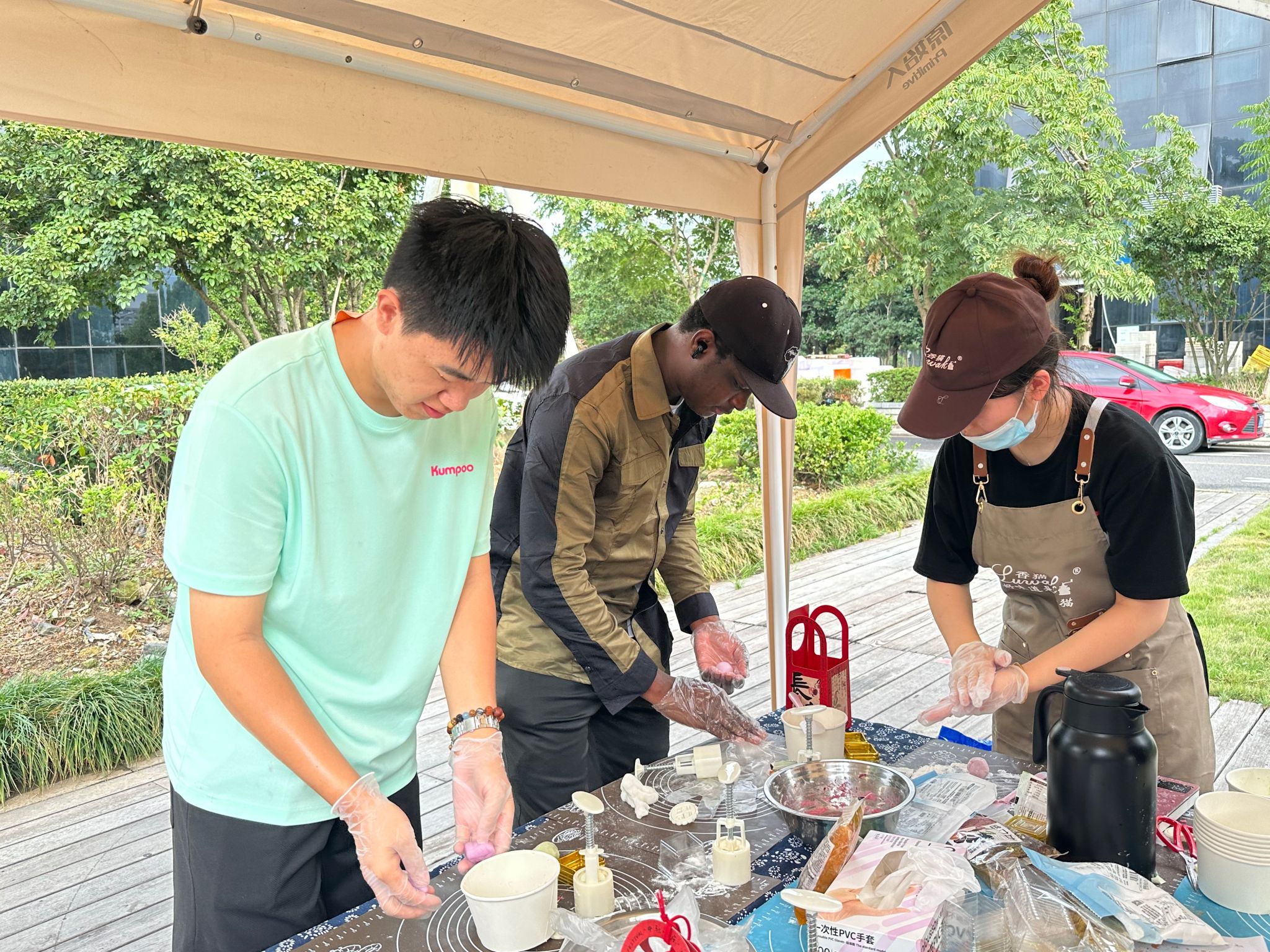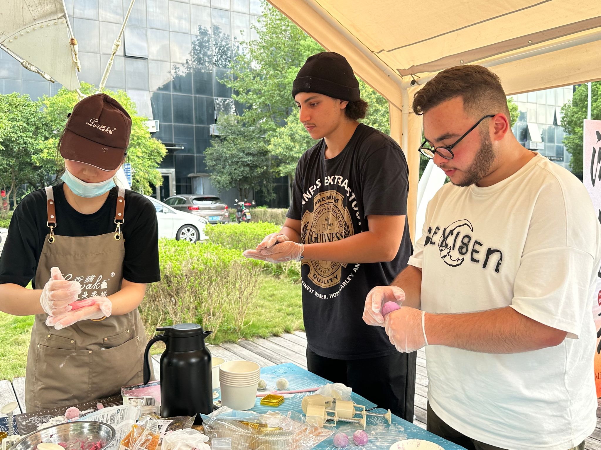 最让留学生们期待的环节是亲手制作月饼。老师讲授了月饼的制作流程,从和面、包馅到压模成型,每一个步骤都充满了新奇和乐趣。当品尝到自己亲手制作的月饼时,每位同学的脸上洋溢着满满的成就感和幸福感。