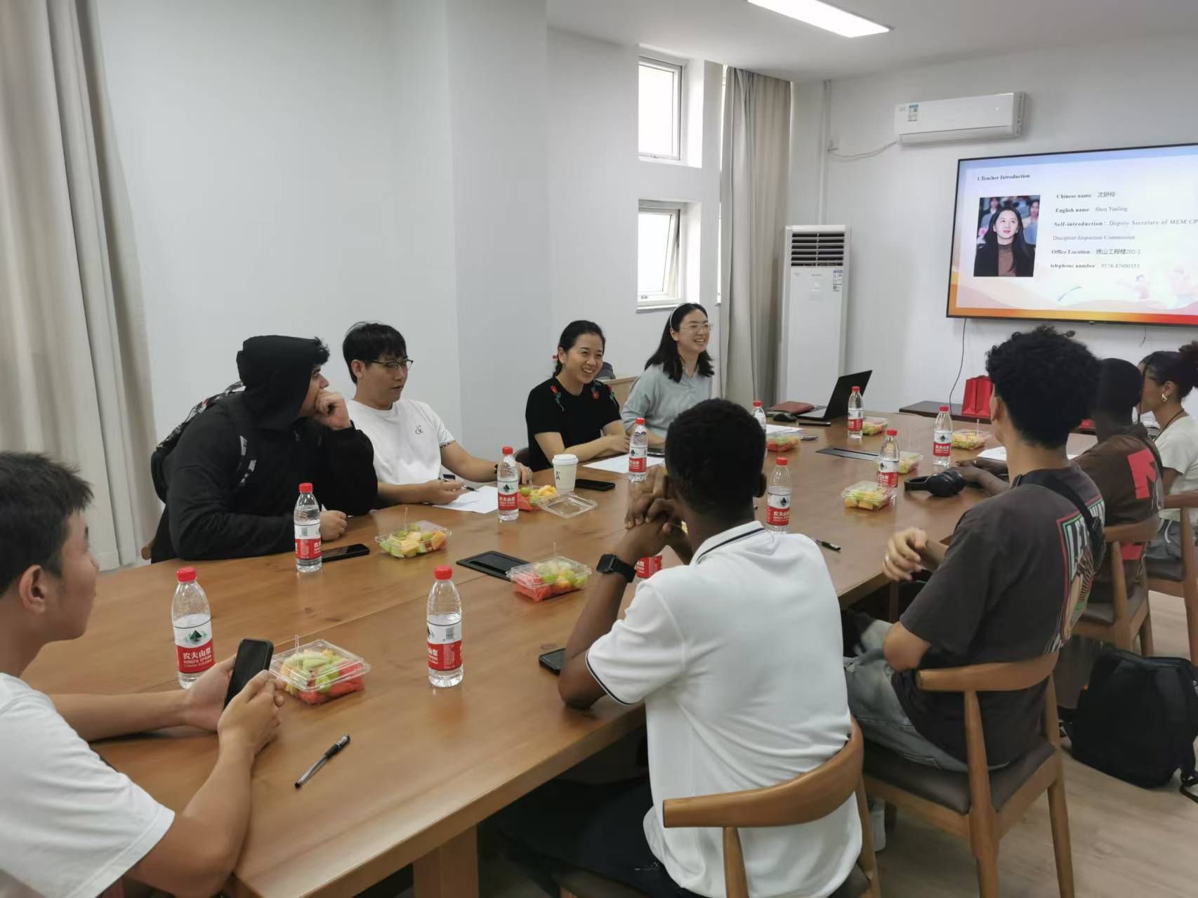 在绣山工程大楼会议室220举行2024级国际学生欢迎会。学院党委副书记沈妍伶、学院国际部负责人吴柯、国际学生辅导员晏程程和助理辅导员王顺顺参加,本次活动由国际学生辅导员晏程程主持。