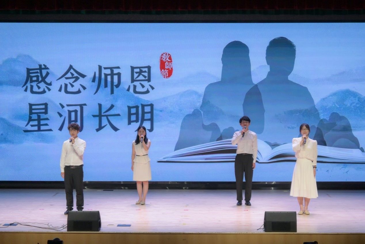 开场的情景朗诵《感念师恩,星河长明》以王雅娟老师与校友之间发生的真实故事为背景,从校友们的视角讲述了王雅娟老师对学生时期的他们严慈相济、关怀备至。王老师会关心学生的生活困难,也会耐心回应青春期的困惑。她身体力行地为学生无私奉献,点点滴滴,都是校友们最温暖的校园记忆。相遇风华,师恩难忘,令人不禁动容。