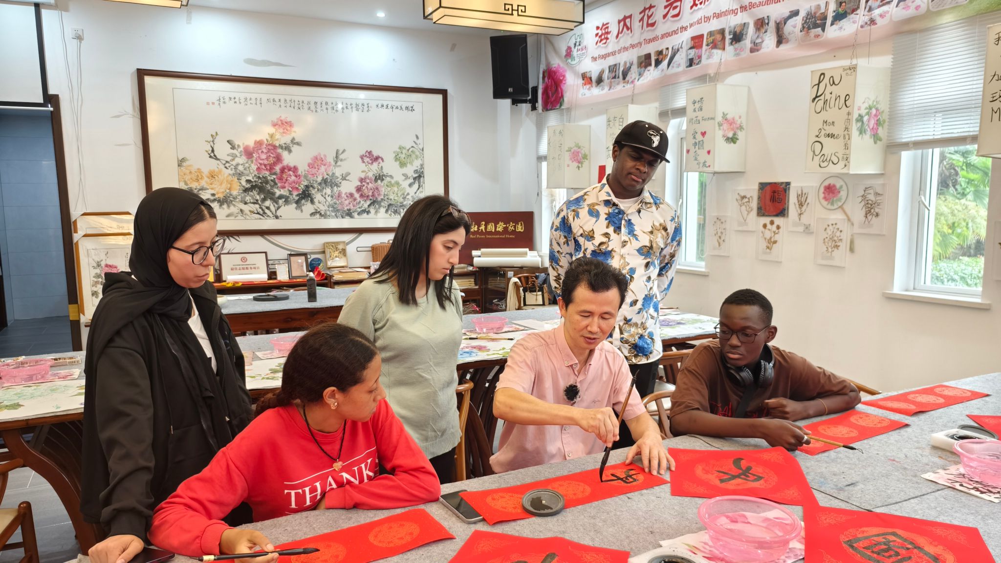 举办“笔墨飘香迎国庆,师生共筑爱国情”国际学生书法绘画体验活动