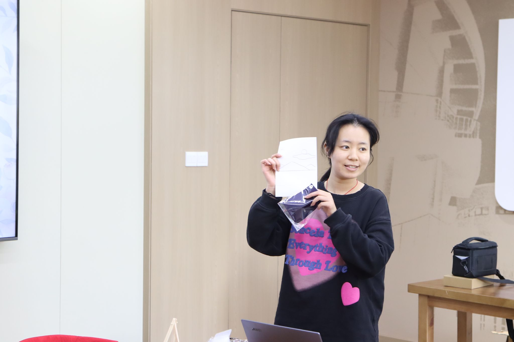 活动伊始,主讲人潘婧老师简要介绍了“心灵肌理画”的概念与创作方法,强调了活动对于提升个人情绪管理能力的重要性。随后,现场展示了如何利用不同材质和工具,如颜料、纸张、布料碎片等,创造出富有层次感和质感的肌理效果。潘老师一边操作,一边分享了自己在艺术创作中的心得与感悟,激发了同学们浓厚的兴趣和创作欲望。