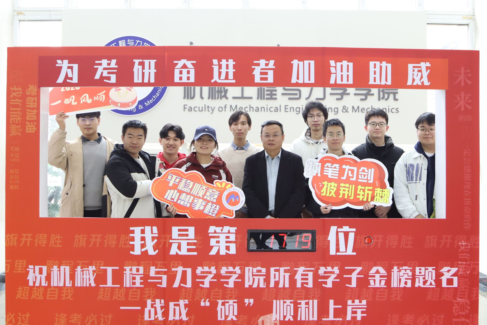 特聘院长阮殿波,党委副书记沈妍伶,副院长郑宇轩等院领导以及学院辅导员们共同为考研学子送上鼓励与祝福。