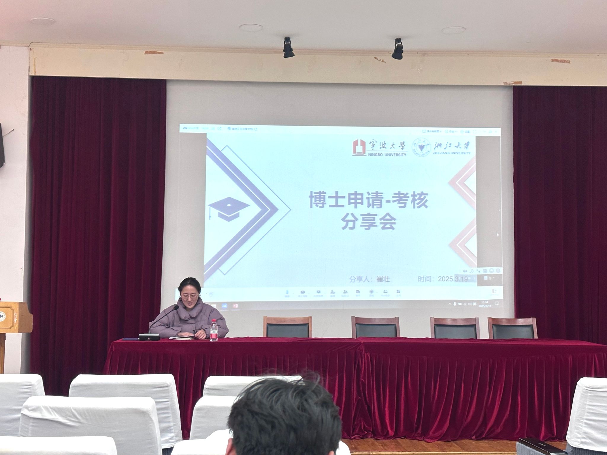 优秀学长学姐考博经验分享会。分享会邀请了崔壮和连晨成两位博士学长主讲,通过线上线下相结合的方式开展,研究生辅导员潘晶婧主持,80余名同学齐聚会堂,共同探讨申博策略与学术成长路径。