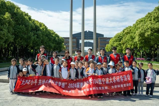 机械专业本科生党支部、力学科普宣讲团共同主办,镇海区静远小学104班协办的“大手牵小手 共绘未来科技梦想”主题党团日活动在宁大举行。