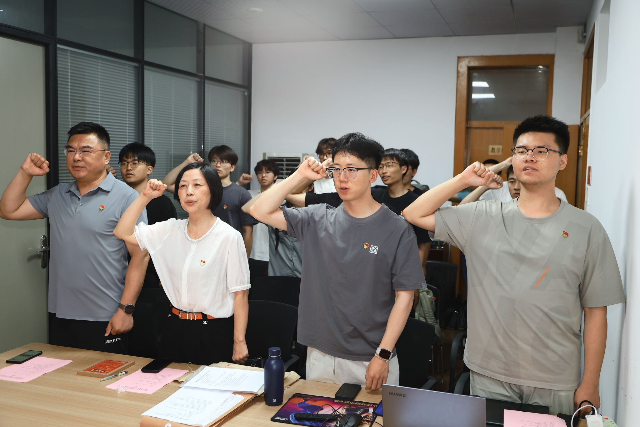 期间,两位受邀家长向在场同学们分享了在岗工作体会感受,并结合分别担任杭州市临安区寸草心社会工作服务中心党支部书记与临安中医院行政后勤第一党支部书记的履职情况,向大家表示要强化政治担当,认真尽职尽责,在工作生活中积极展现党员服务人民的风范与宗旨。在毕业生党员代表陈宽同学的领誓下,全体同志紧握右拳,重温入党誓词并庄严宣誓。