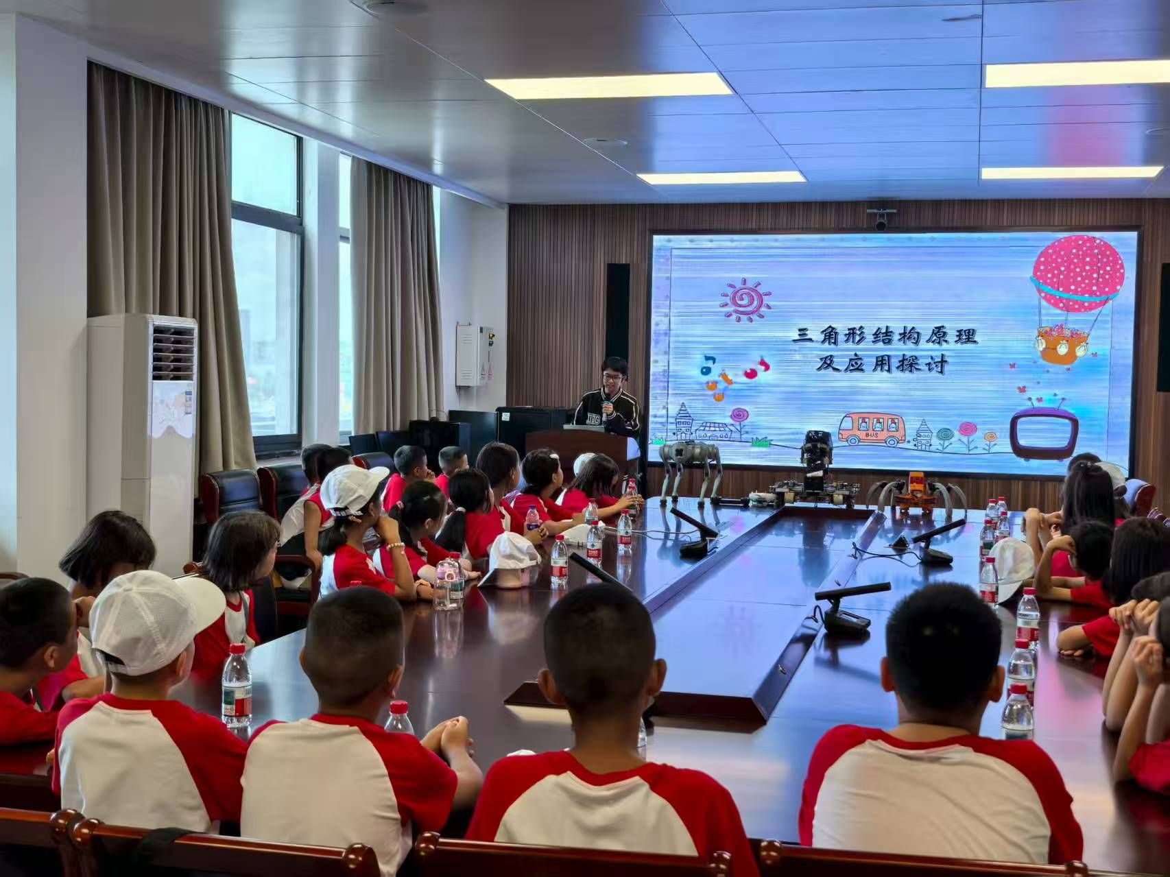 力学科普宣讲团成员则为大家带了来一场主题为《三角形结构原理及应用探讨》的科普小课堂,通过理论知识讲解和动手实践制作结合的方式,让小学生们近距离感受力学的奥秘与魅力。此外,现场还展示了由学院学生研制的仿生蜘蛛机器人、工兵车机器人以及购买来用于日常教学的宇树机器狗,并细心指导小朋友们进行操作演示。大家踊跃参与,并不时与志愿者们交流互动。活动临近结束,纷纷表示“以后还想来”“长大了要考成人韩漫