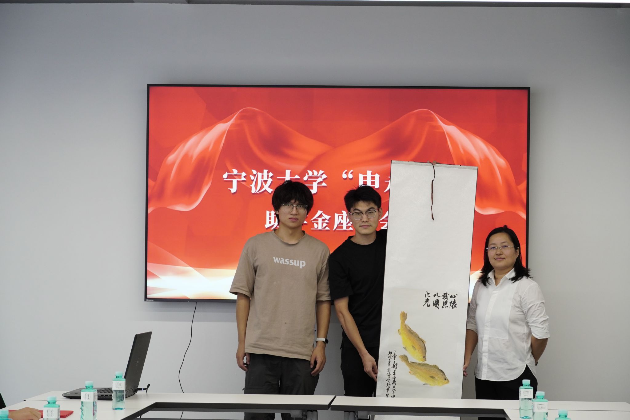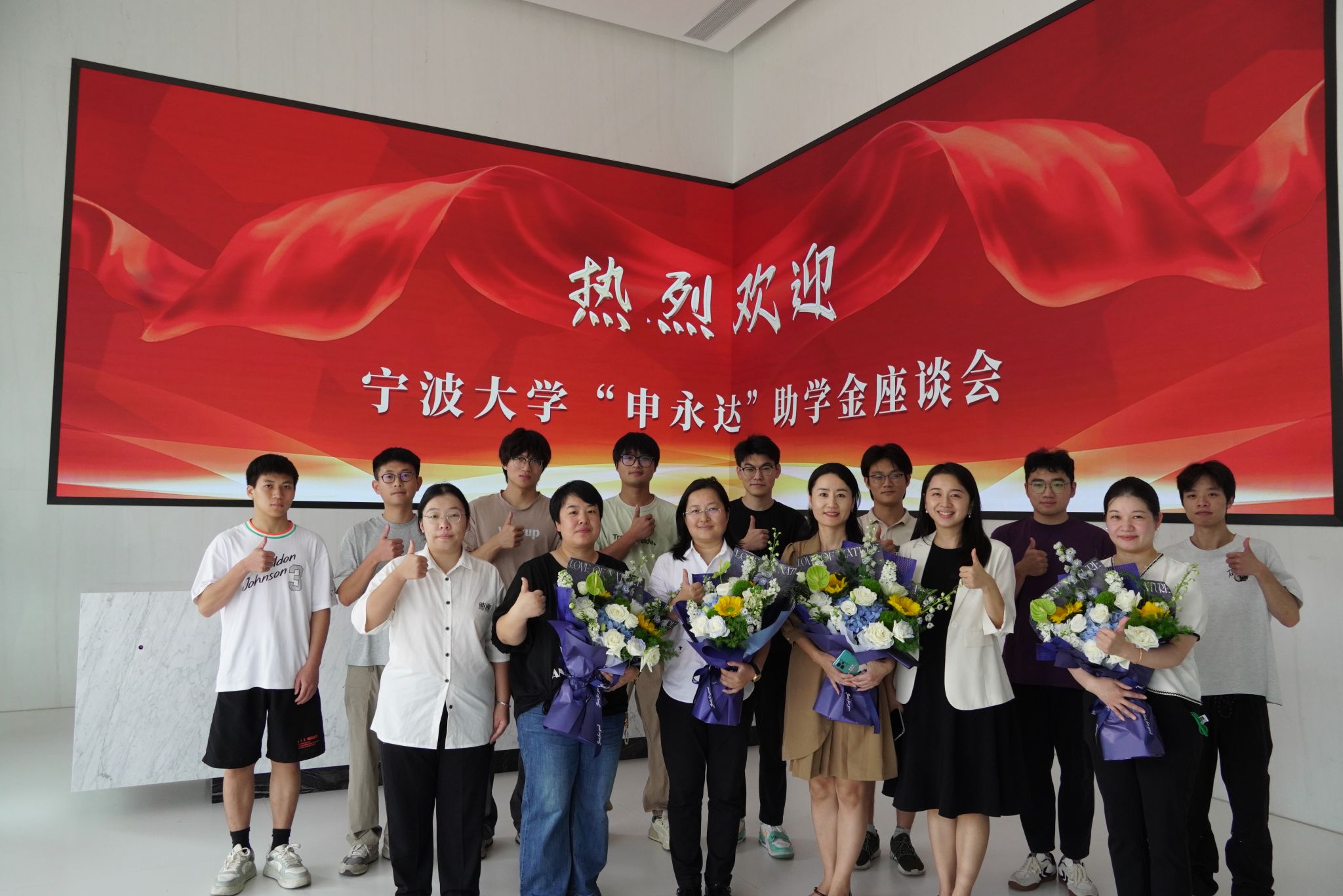 座谈会尾声,受助学生代表向林颖静女士送上了亲手制作的鱼拓画礼物,表达最纯洁、最真挚的感恩之情。受助学生代表还向捐赠方嘉宾敬献鲜花,现场响起热烈掌声。最后,全体与会人员合影留念,将这份温暖与感动的瞬间永久定格。