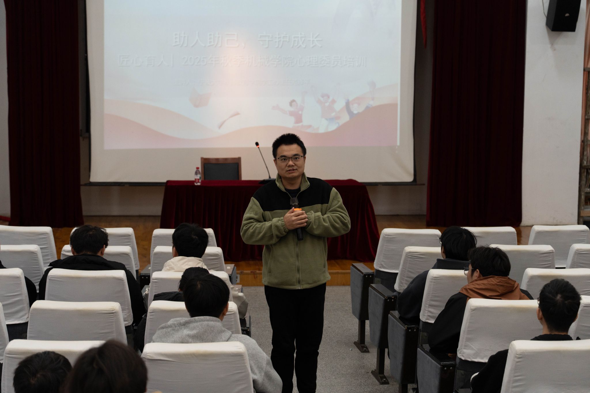 “匠心育人” 心理健康教育辅导站特邀教师教育学院学工办主任范泽平老师,为全院各班心理委员带来了一场“助人助己,守护成长” 为主题的,“干货满满” 的心理健康工作专题培训讲座。现场座无虚席,来自不同年级的心理委员们带着学习热情与工作困惑,全身心投入这场兼具理论深度与实操价值的培训中。