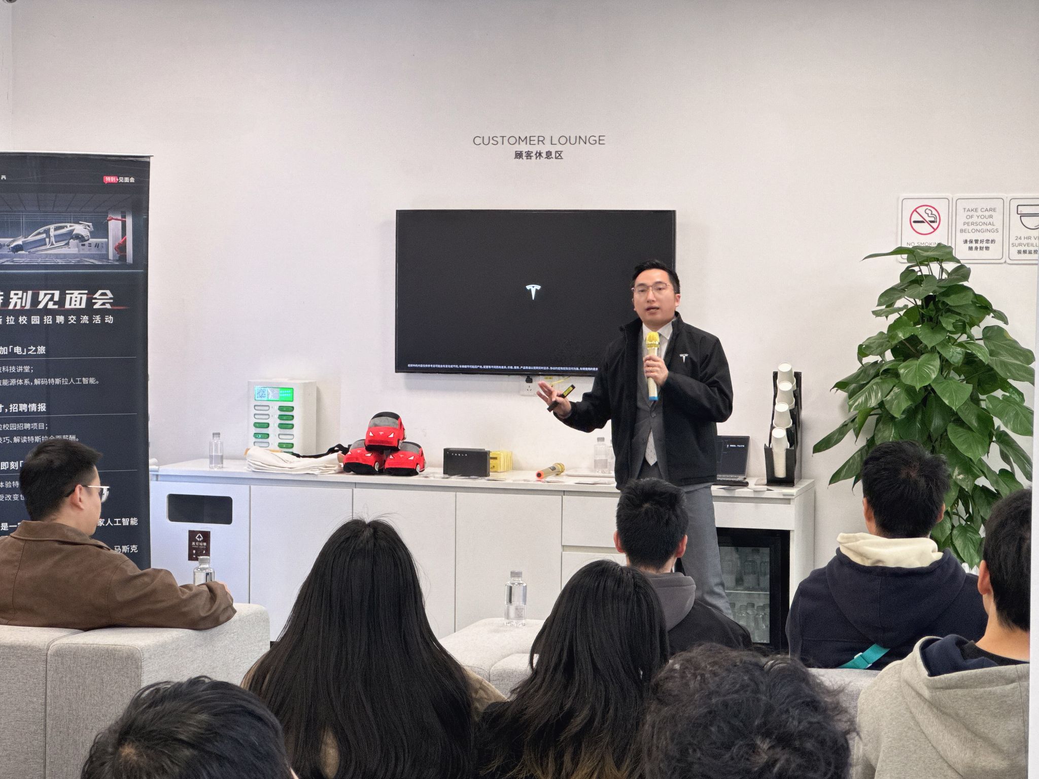 师生的到来表示欢迎,并以“智能电动车的开创者”为核心定位,围绕企业四大核心业务板块——“电动车、人工智能、机器人、能源存储”展开详细介绍,同时分享了开放协作的团队氛围。他特别提及“电动车全球累计交付超600万辆”的行业里程碑,为师生勾勒出特斯拉在新能源领域的全景业务布局与市场影响力。服务部经理聚焦“未来出行生态的守护者”角色,详解了“一线服务团队与服务运营团队的协同模式”,以及部门核心工作内容、阶梯式职业晋升路径,强调加入特斯拉服务体系的学生将接触产品、技术、销售、客户沟通等多维度业务,为意向学生明确了成长方向与能力培养重点。招聘负责人则深度拆解校招与实习体系,详解了特斯拉的“全面薪酬体系”。活动期间,校企双方还围绕人才培养方案、职业发展路径、工作地选择等内容进行了交流。